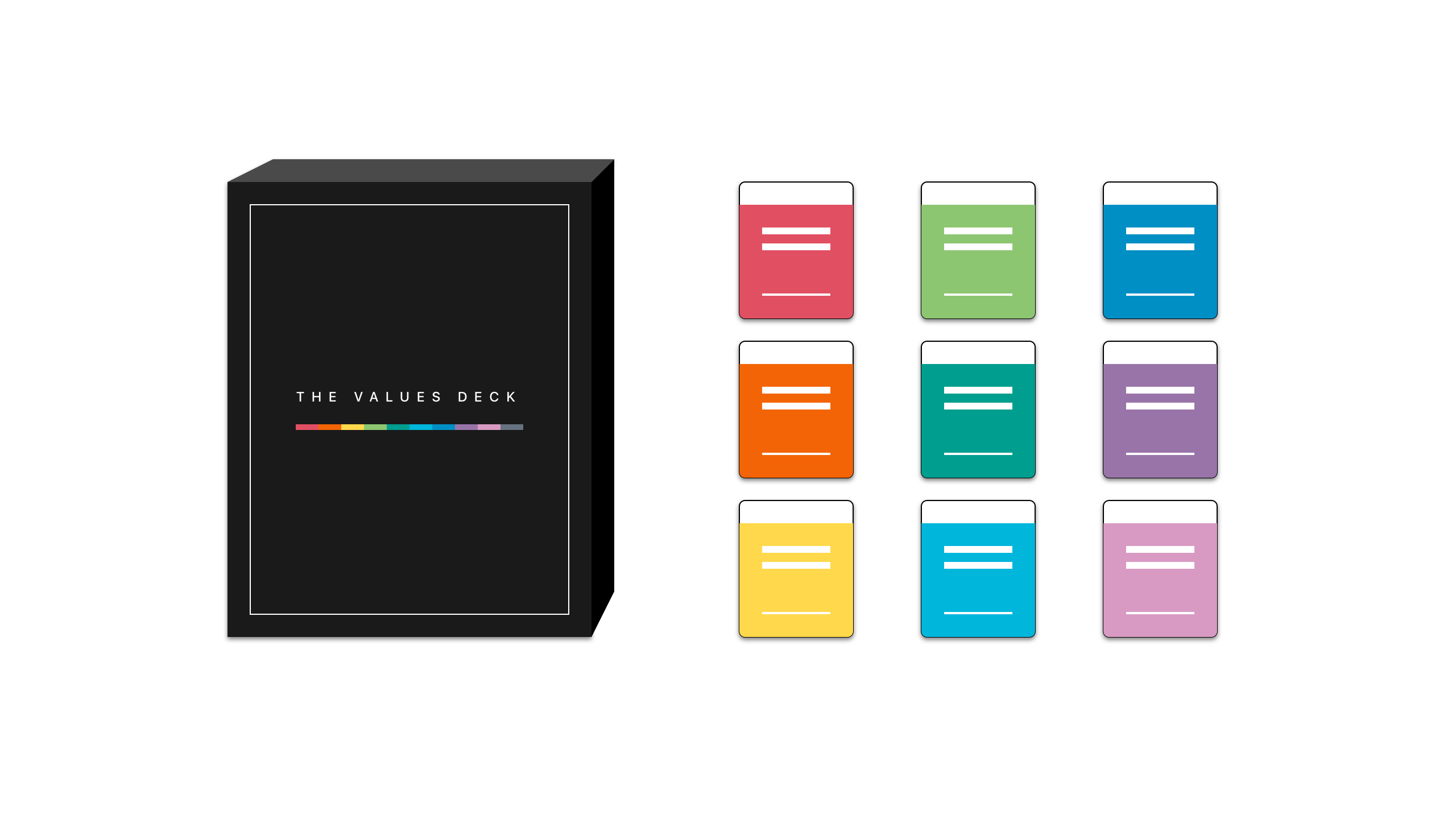 Each individual will identify his or her top values using The Values Deck(sold separately), an engaging and reflective card sorting game for values-based development.
